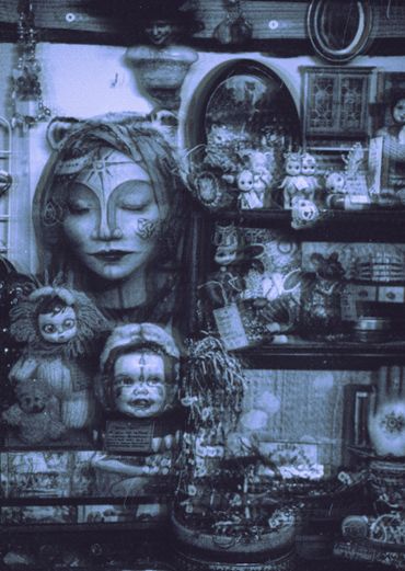 Black and white portrait of a woman with curled hair looking thoughtfully away.